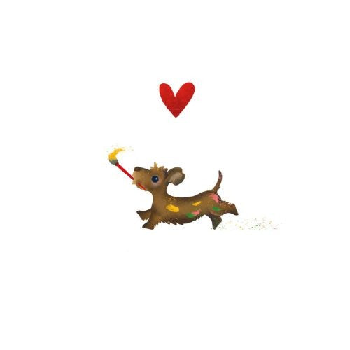 De kaartjes van Yon bevatten zowel aan de binnen-, als buitenzijde geen tekst wat de kaartjes voor diverse gelegenheden perfect maken. Op de voorzijde van dit kaartje staan een leuke teckel die aan het schilderen is en een hartje. Perfect voor een feestelijke gelegenheid of gewoon iemand waar dit perfect bij past.