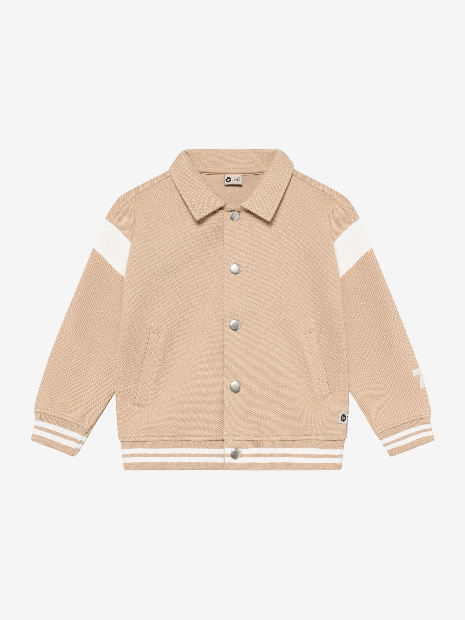 Onmisbaar! Zo'n fijn bomberjack van Daily7 voor de jongens in maat 92 t/m 116! Het model heeft een oversized fit, waardoor hij heel comfy zit en heeft een mooie neutrale kleur. Combineer met een stoere sweater of juist met een leuk t-shirt in combinatie met een spijkerbroek of juist een korte broek. Een bomberjack is echt zo'n item die je kindje eindeloos kan doordragen, ideaal!