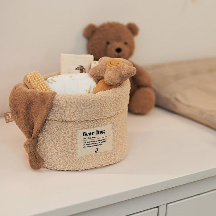 Het Jollein Commodemandje Bouclé is een stijlvol en praktisch opbergmandje van zachte, aaibare bouclé-stof. Met een afmeting van 14x18 cm is het perfect voor het organiseren van verzorgingsspullen op de commode of klein speelgoed in de woonkamer. De gevoerde binnenzijde is eenvoudig schoon te maken, waardoor het mandje zowel functioneel als decoratief is voor elke babykamer.