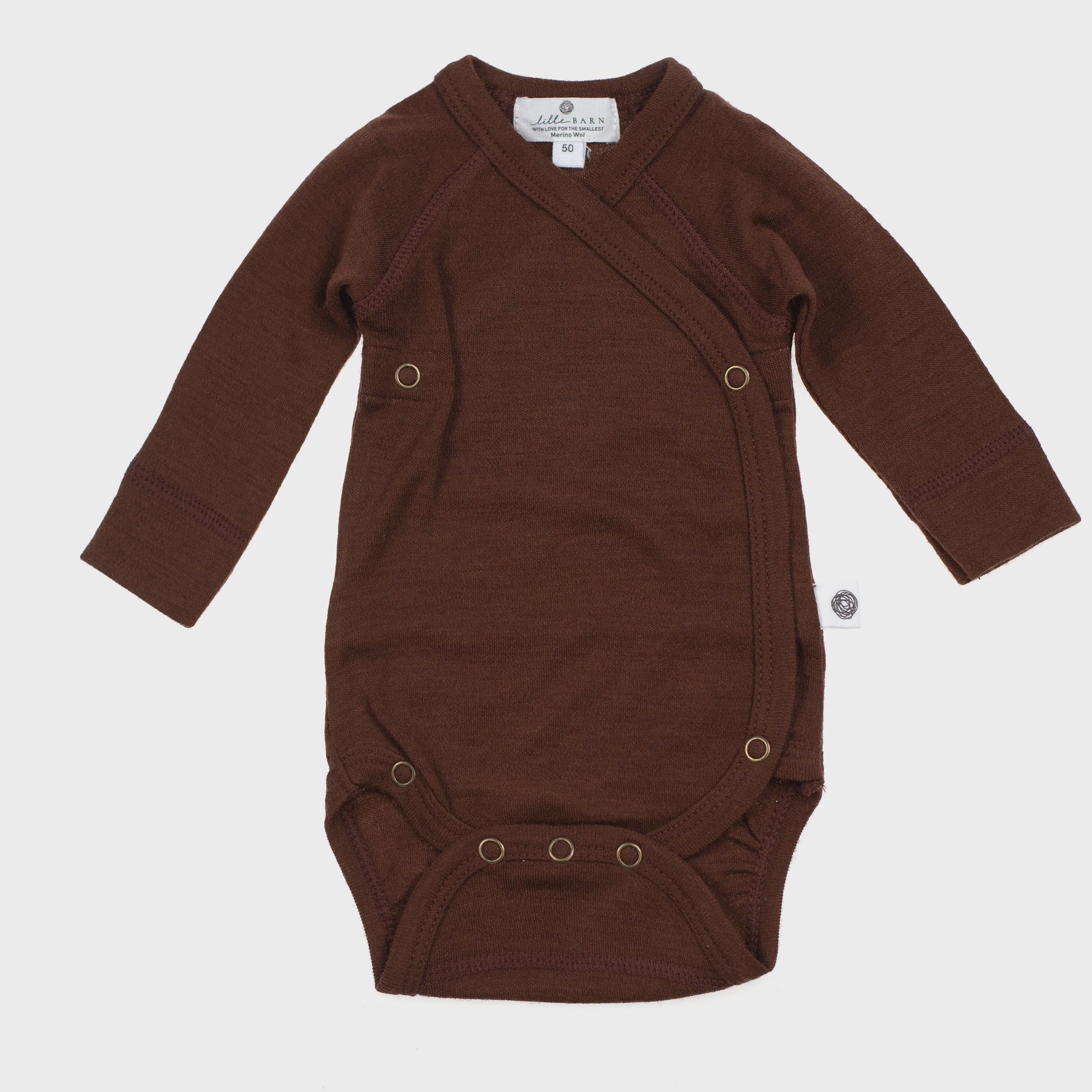 Lille Barn Overslagromper Merinowol - Chocolate