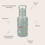 Maak drinken extra leuk met deze stoere drinkfles uit met auto's van Kidzroom. Op de fles staan allerlei leuke autootjes, is perfect voor kleine handjes en houdt drankjes tot 45°C warm. Dankzij het rietje, de draaidop en uitklapbare tuit drinkt je kleintje makkelijk zelfstandig. Maak de set compleet met de bijpassende lunchbox en rugzak! Je shopt alle items in onze Turtle & Bear webshop, maar ook in onze gezellige kinderwinkel in hartje Arnhem.