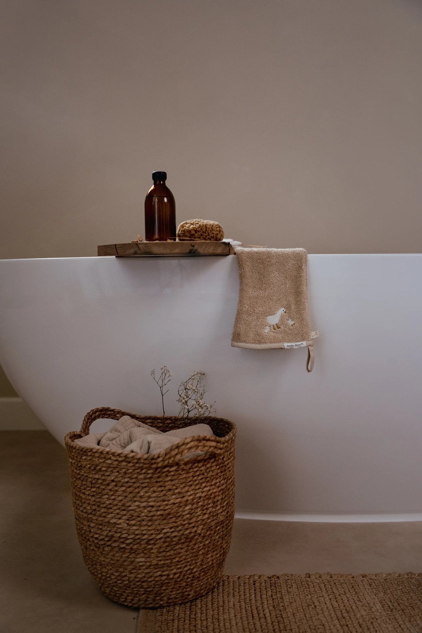 Deze lange washand van Little Dutch is een echt musthave voor de babyuitzet. Doe de washand om wanneer je gaat douchen met je baby. Op deze manier heb je veel meer grip en kun je je baby beter vasthouden. Zo wordt douchen stukje veiliger en een groter feestje! De washand heeft een prachtige beige kleur en een lief geborduurd gansje. Ook perfect als kraamcadeau.